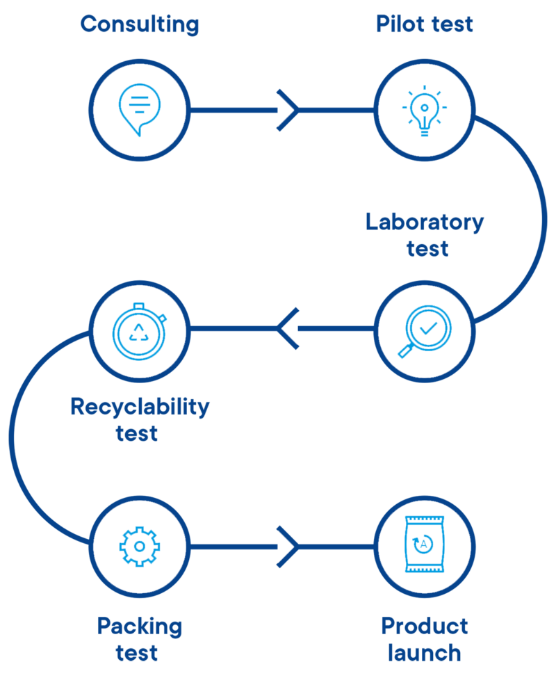 Through rigorous material engineering, pilot-scale development and comprehensive testing, we validate performance, recyclability and regulatory readiness from the earliest stages. This structured approach reduces development risk, accelerates time to market and ensures packaging solutions that perform today while remaining resilient to future regulatory and market demands.